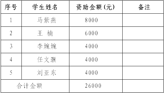 根據(jù)《張掖市慈善協(xié)會、甘肅省張掖中學(xué)、張掖市多成農(nóng)業(yè)有限公司關(guān)于開展第二屆“青衿助學(xué)”項目實施方案》,由張掖市多成農(nóng)業(yè)有限公司定向資助開展“青衿助學(xué)”活動。經(jīng)學(xué)生個人申請、張掖中學(xué)組織報名、“青衿助學(xué)”項目委員會入戶調(diào)查、市居民家庭經(jīng)濟狀況核對中心核對等程序,擬對馬紫燕等符合條件的5名貧困家庭大學(xué)生進(jìn)行資助,現(xiàn)將資助學(xué)生名單及資助金額公示如下,公示期為2021年8月25日至8月27日,共3天。如需反映有關(guān)情況或意見,由市慈善協(xié)會統(tǒng)一受理。