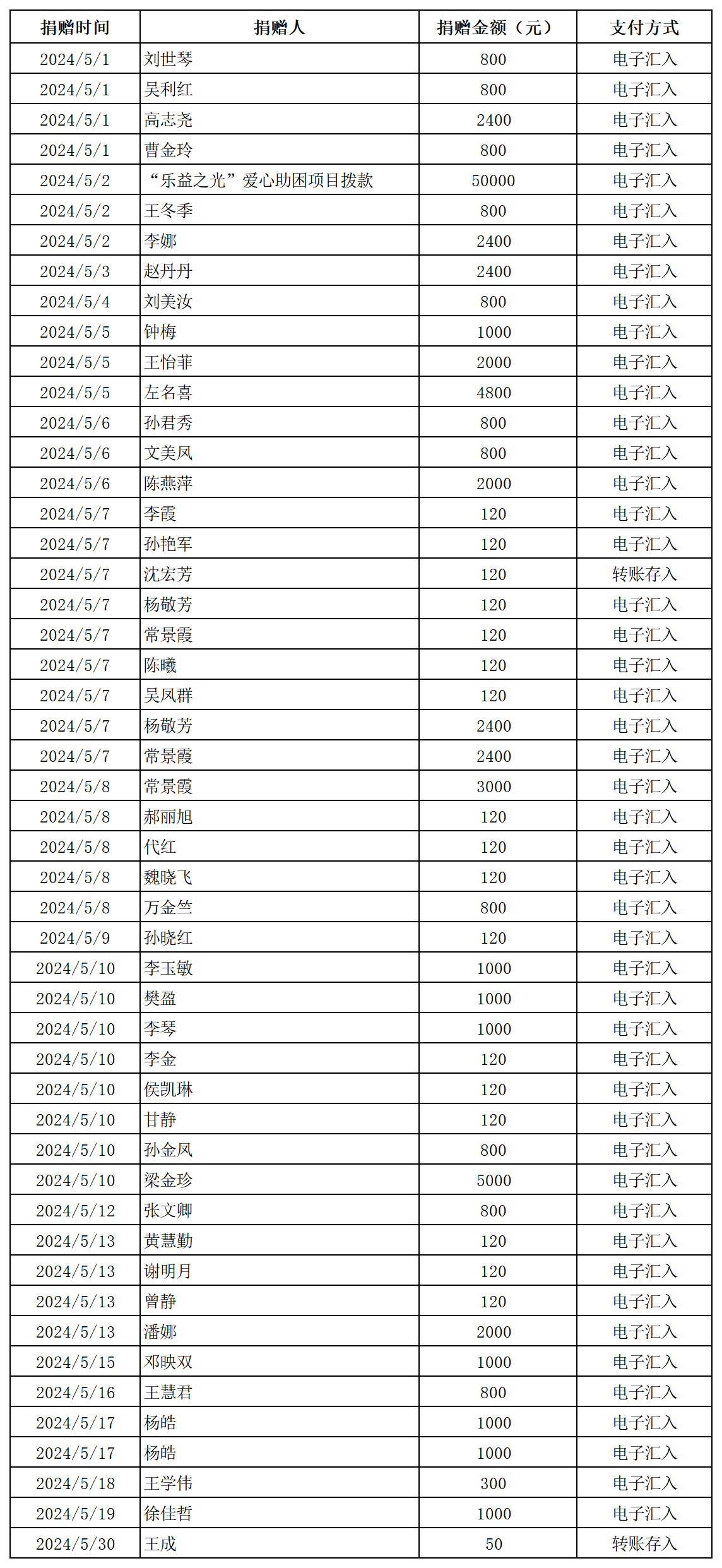 2024年張掖市慈善協(xié)會捐贈光榮榜(三)(銀行轉(zhuǎn)賬收入)